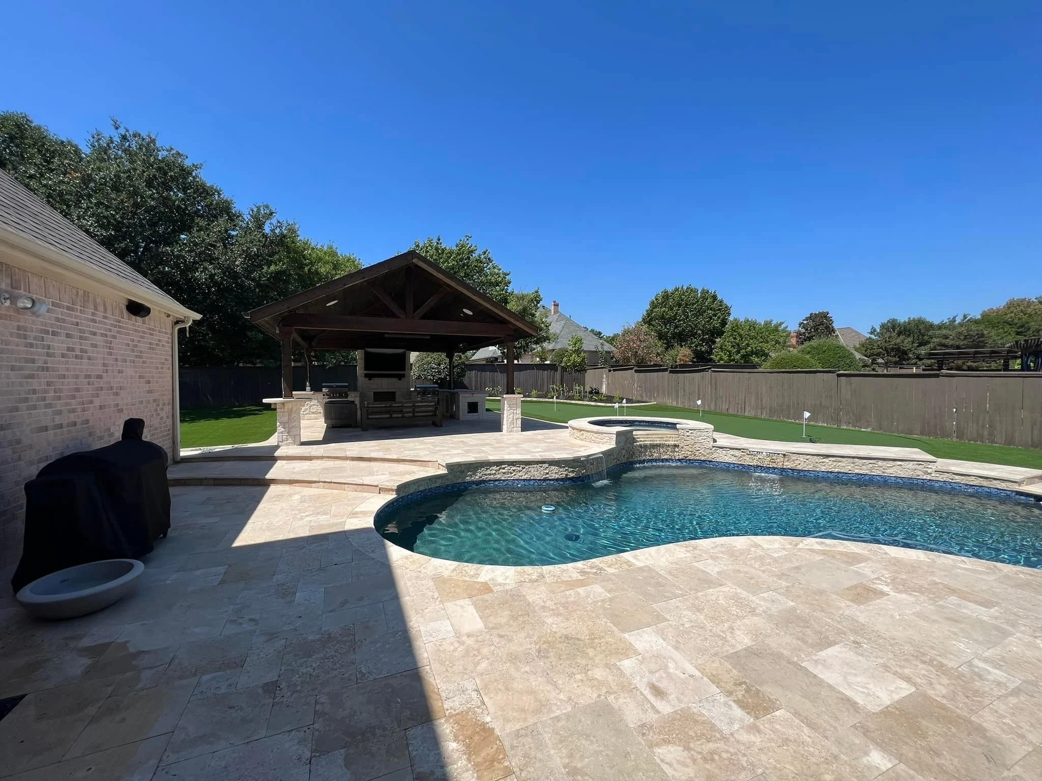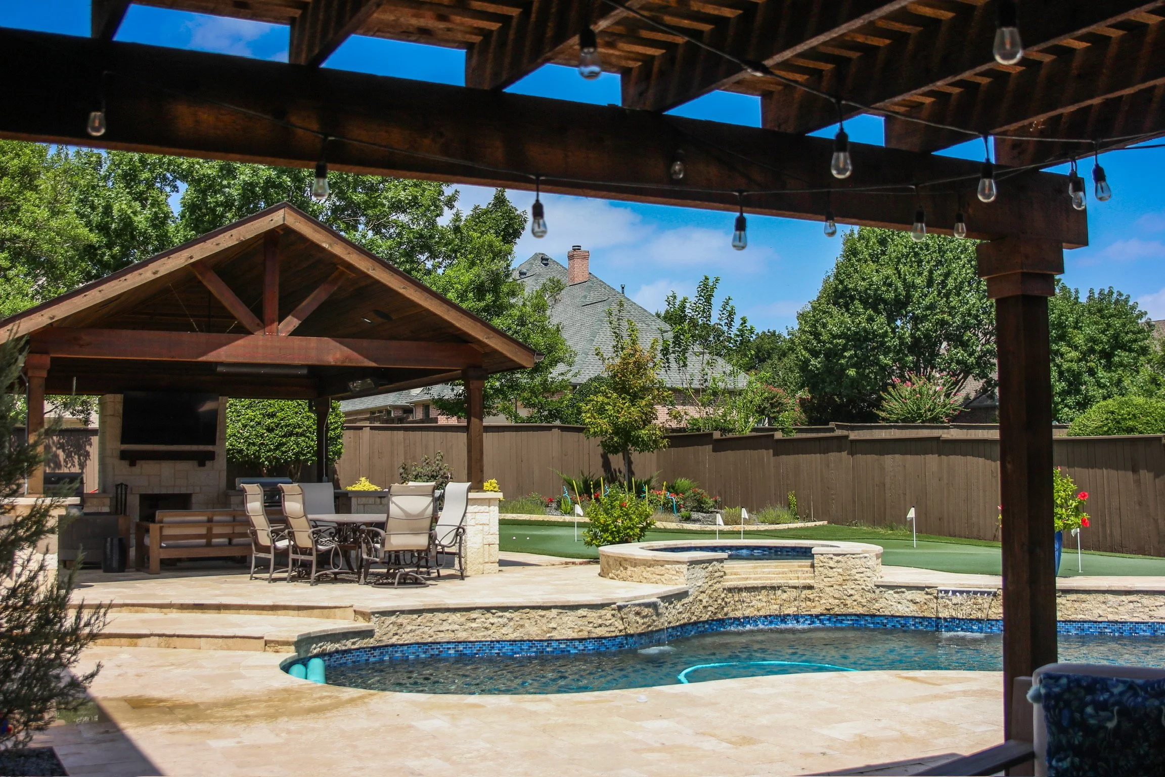 We specialize in custom outdoor kitchens, patio covers, pergolas, fireplaces, retaining walls, turf, hardscapes and pool renovations.